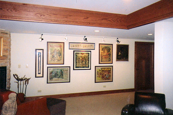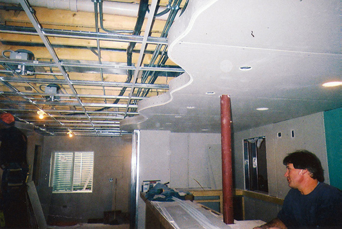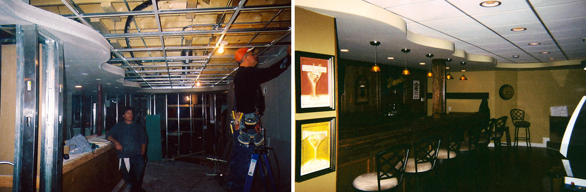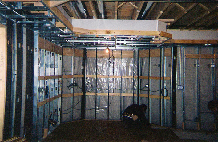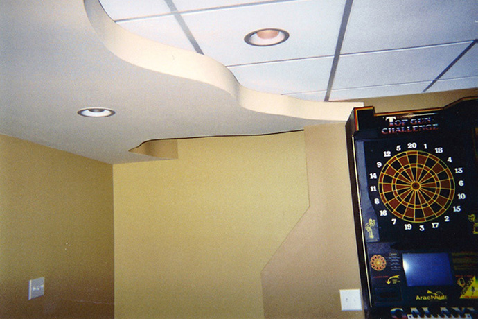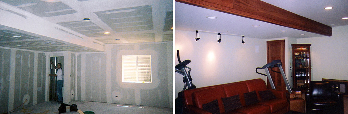 Our basement projects are done using commercial applications. We use steel studs and track. Steel is straighter, it can withstand water damage much better than wood and actually allows for more unique finishes. We utilize lasers as opposed to levels as they are infinitely more accurate.